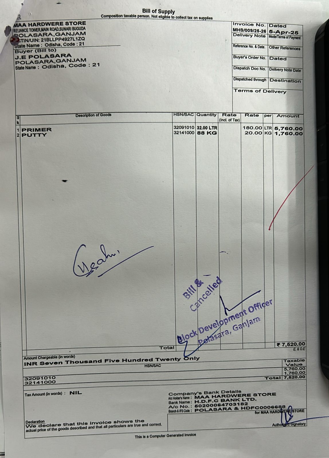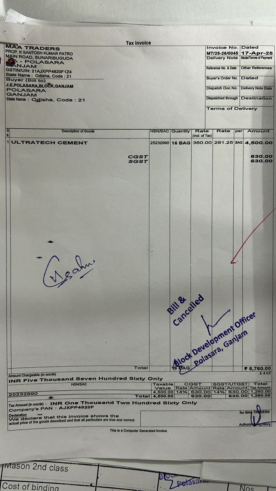 | Administrative Approval | SASI BHUSAN MAHAPATRO (BDO) | 13-05-2025 | 13-05-2025 | Approved |