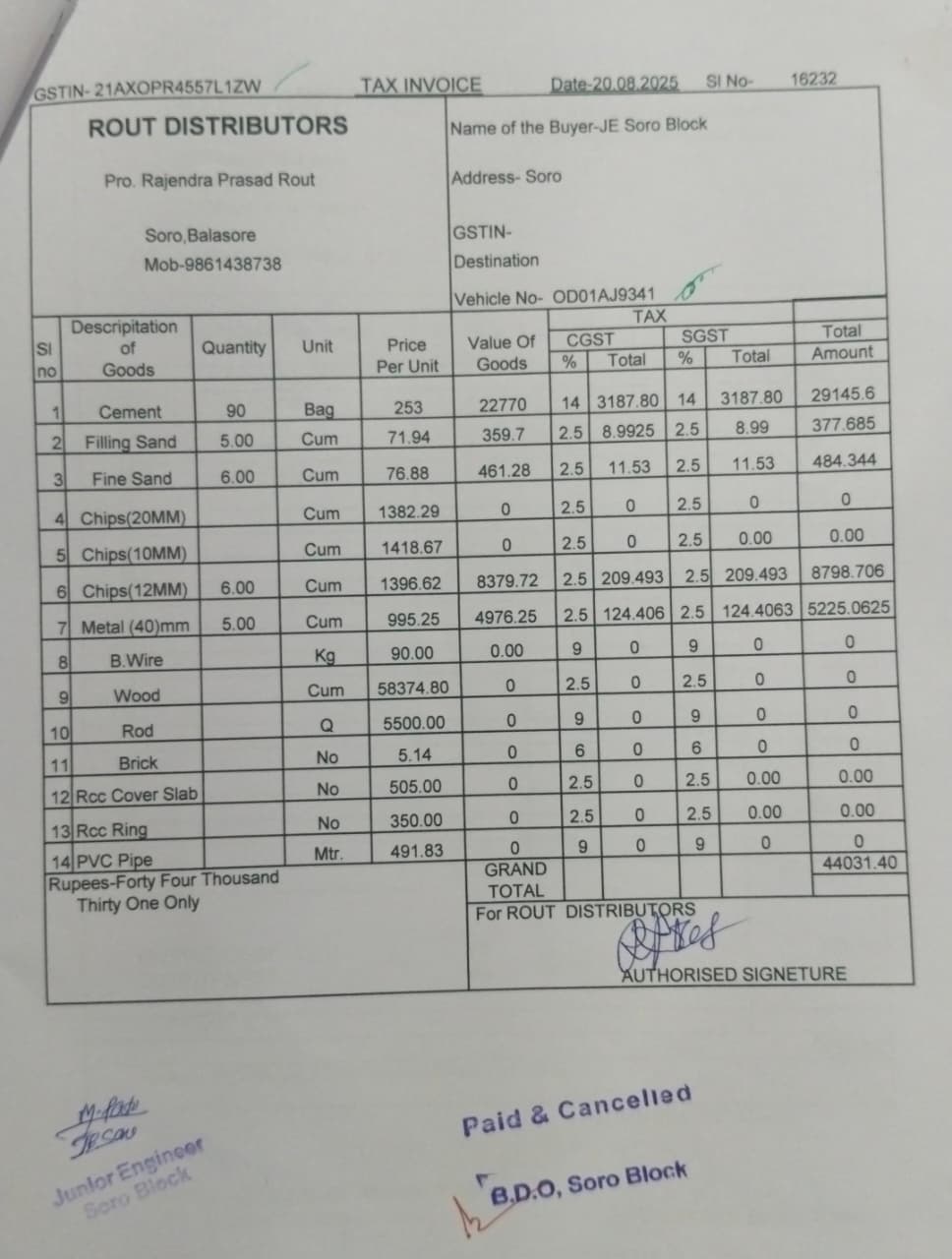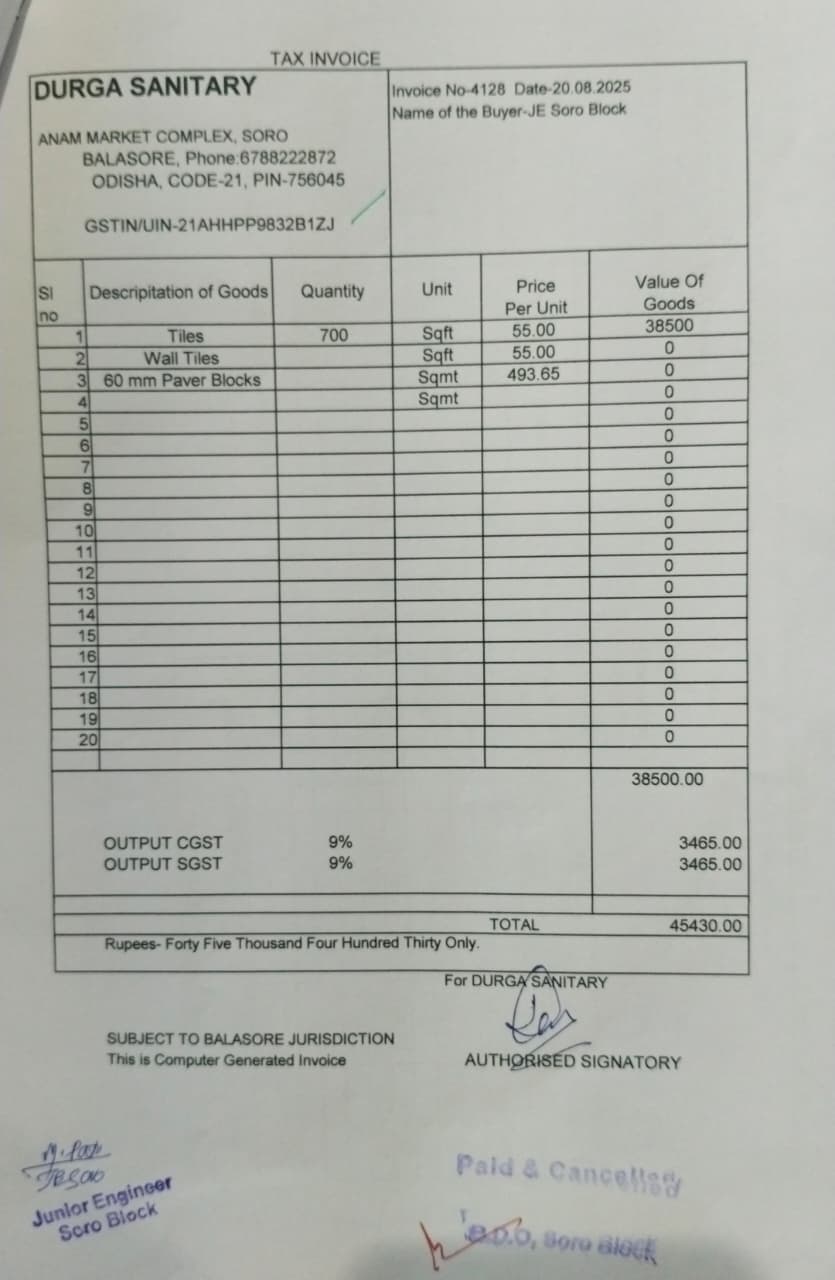 | Technical Sanction | Nirmala Kanta Parida (AEE) | 06-11-2025 | 06-11-2025 | Approved |