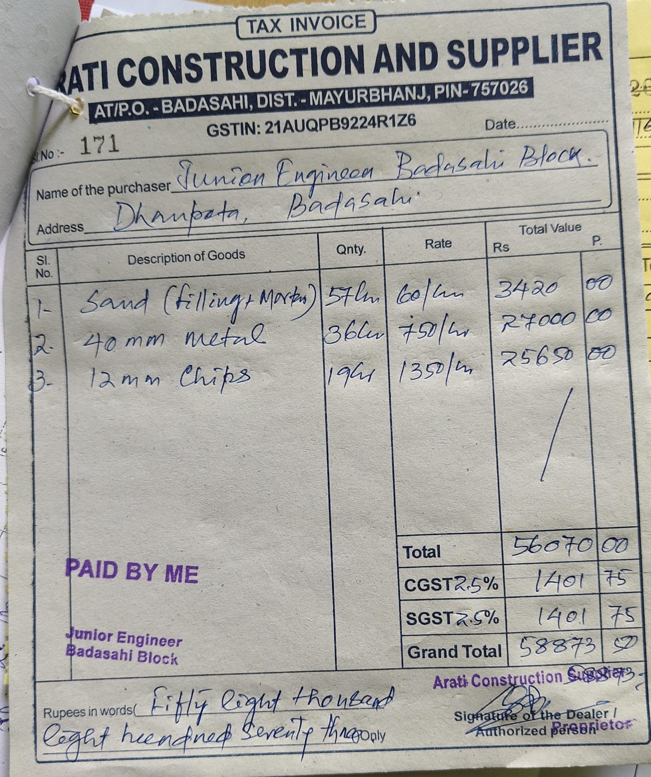 | 1st & Final Bill | ||||