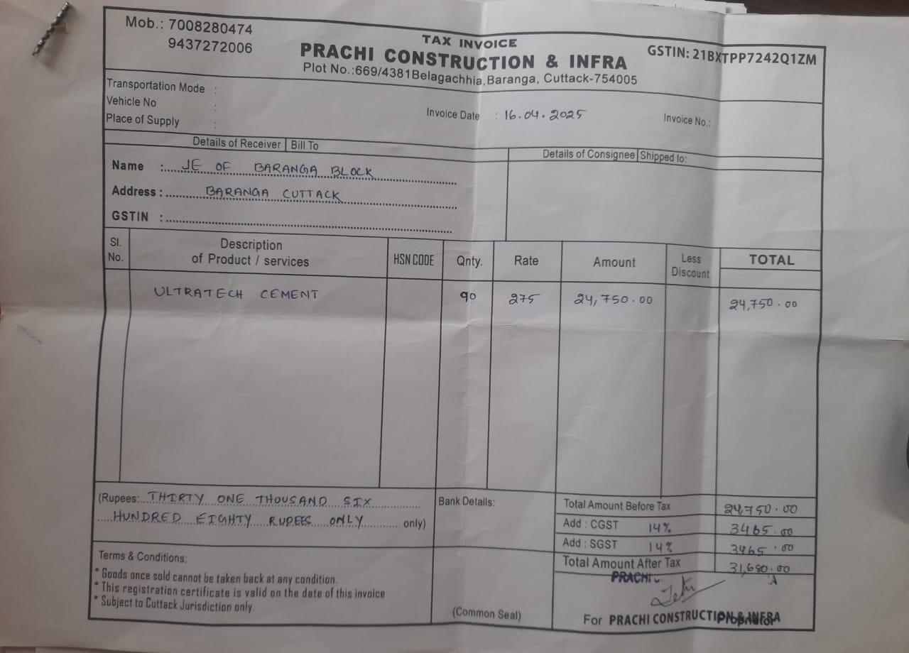 | Technical Sanction | Aditya Narayan Mishra (AEE) | 17-04-2025 | 17-04-2025 | Approved |