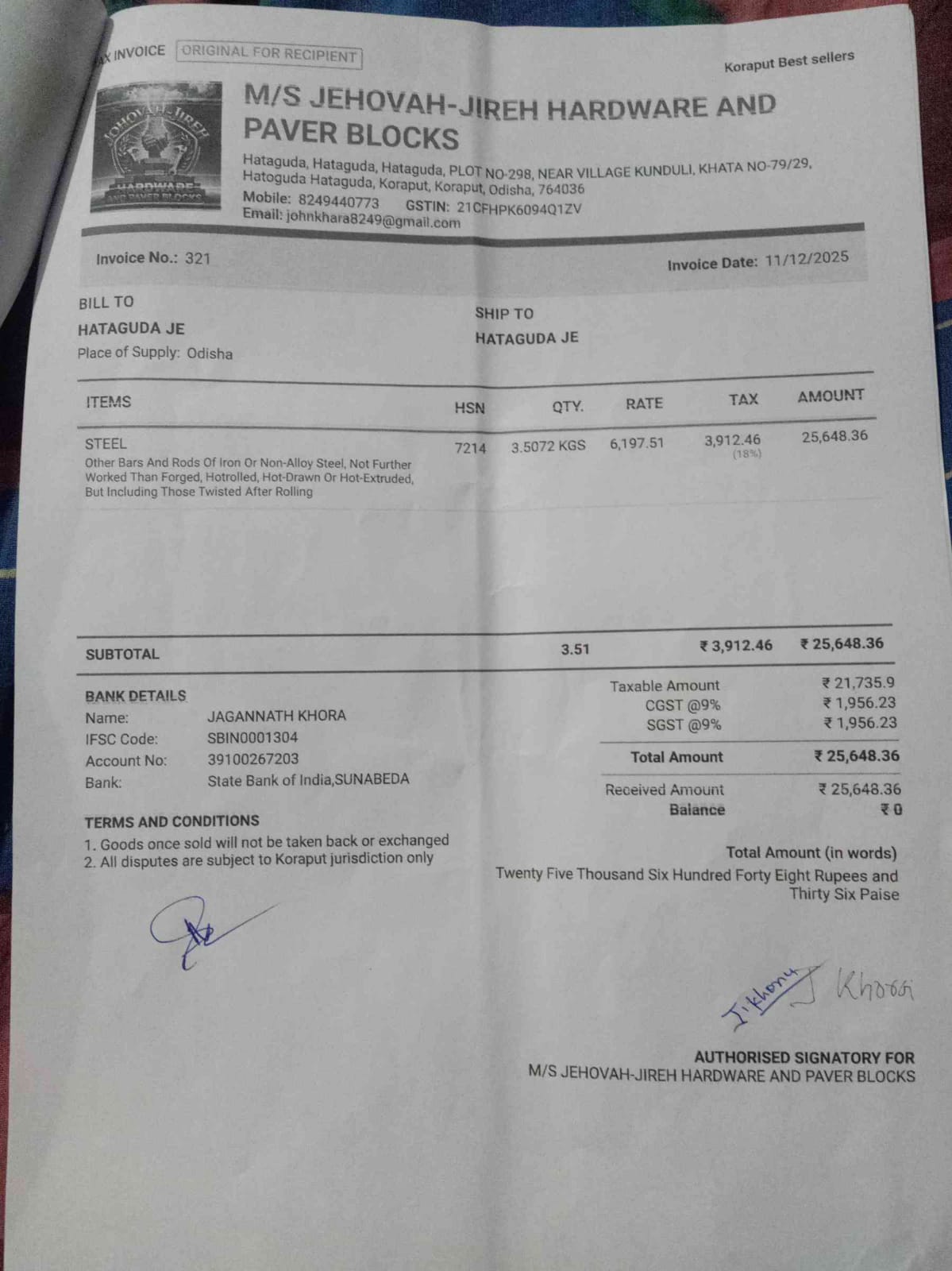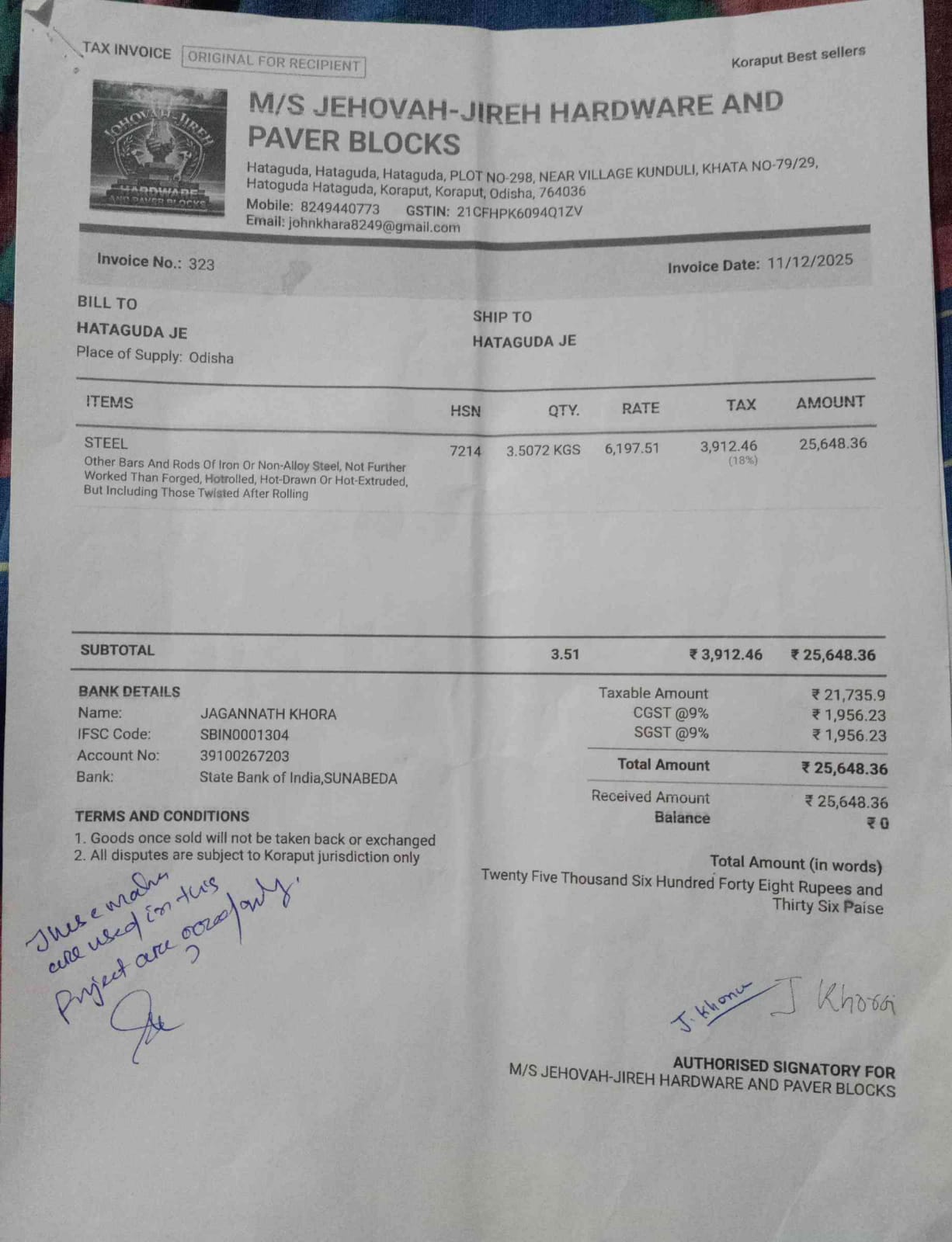| Work Order Issued | JASHMIN KUMAR PRADHAN (BDO) | 15-12-2025 | 15-12-2025 | Generated |