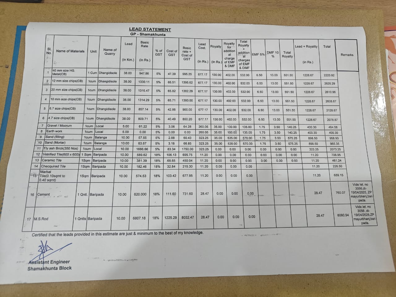 | Execution In Progress | SUSHANTA PANDUA (AE / JE) | 19-12-2025 | 07-01-2026 | Approved |