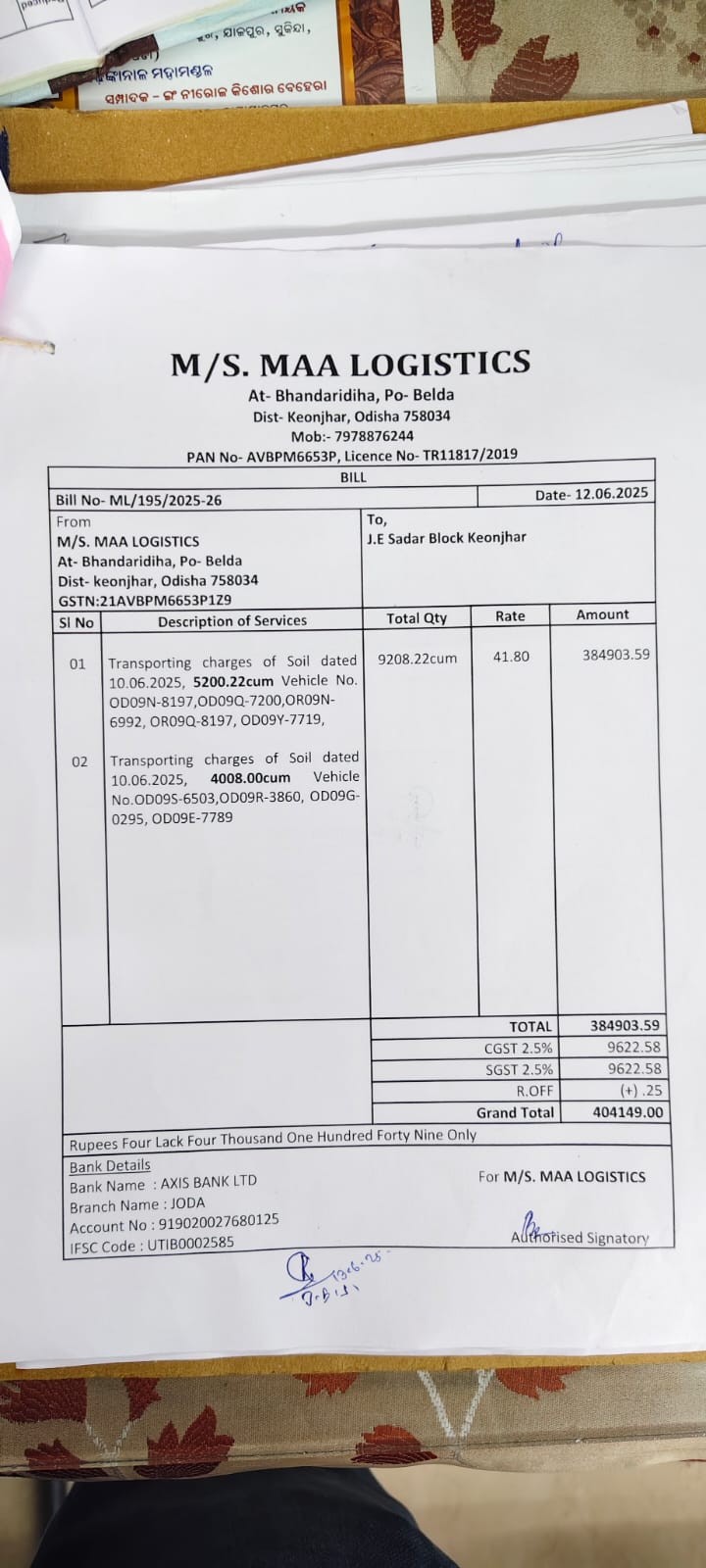| Administrative Approval | Binod Chandra Panda (BDO) | 20-05-2025 | 20-05-2025 | Approved |