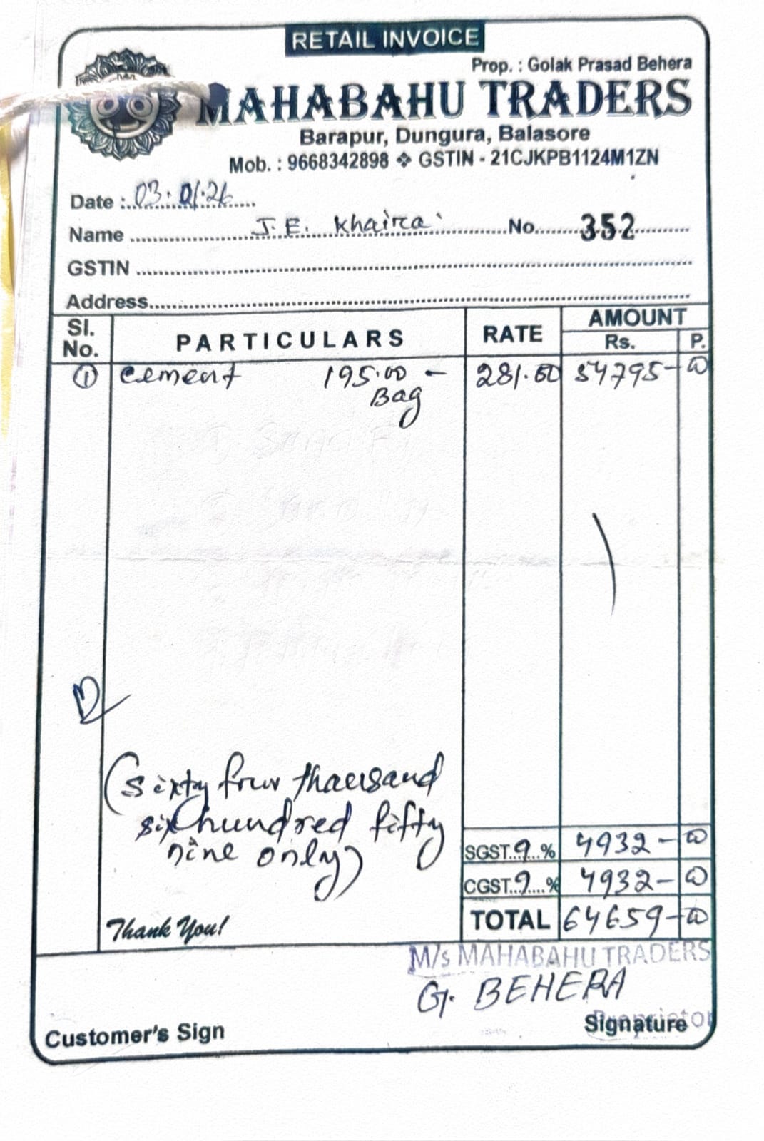 | Administrative Approval | Narayan Sahu (BDO) | 17-01-2026 | 17-01-2026 | Approved |