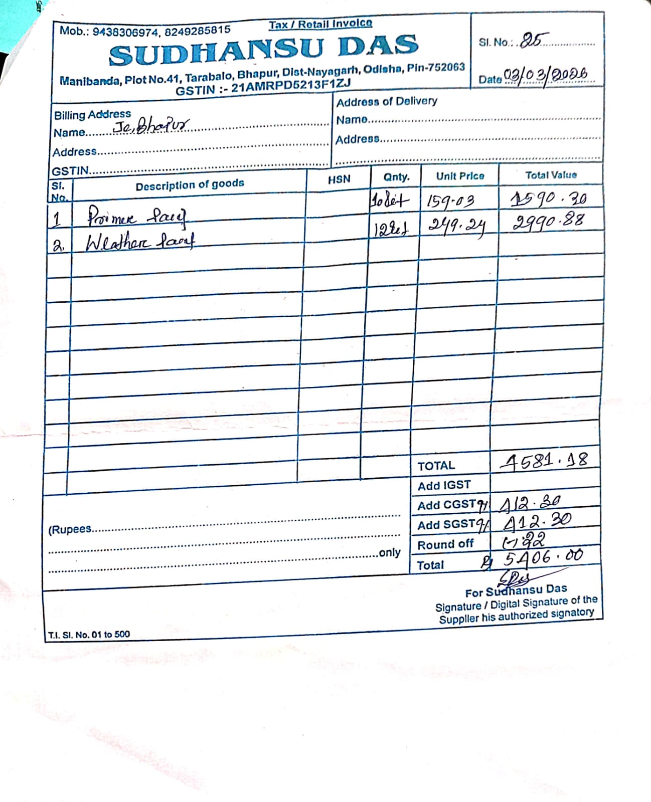 | Estimate Preparation | SARADA PRASANNA PANDA (BDO) | 11-12-2025 | 19-01-2026 | Approved |