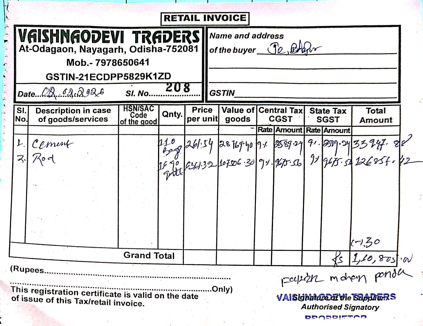 | Work Order Issued | SARADA PRASANNA PANDA (BDO) | 02-02-2026 | 02-02-2026 | Generated |