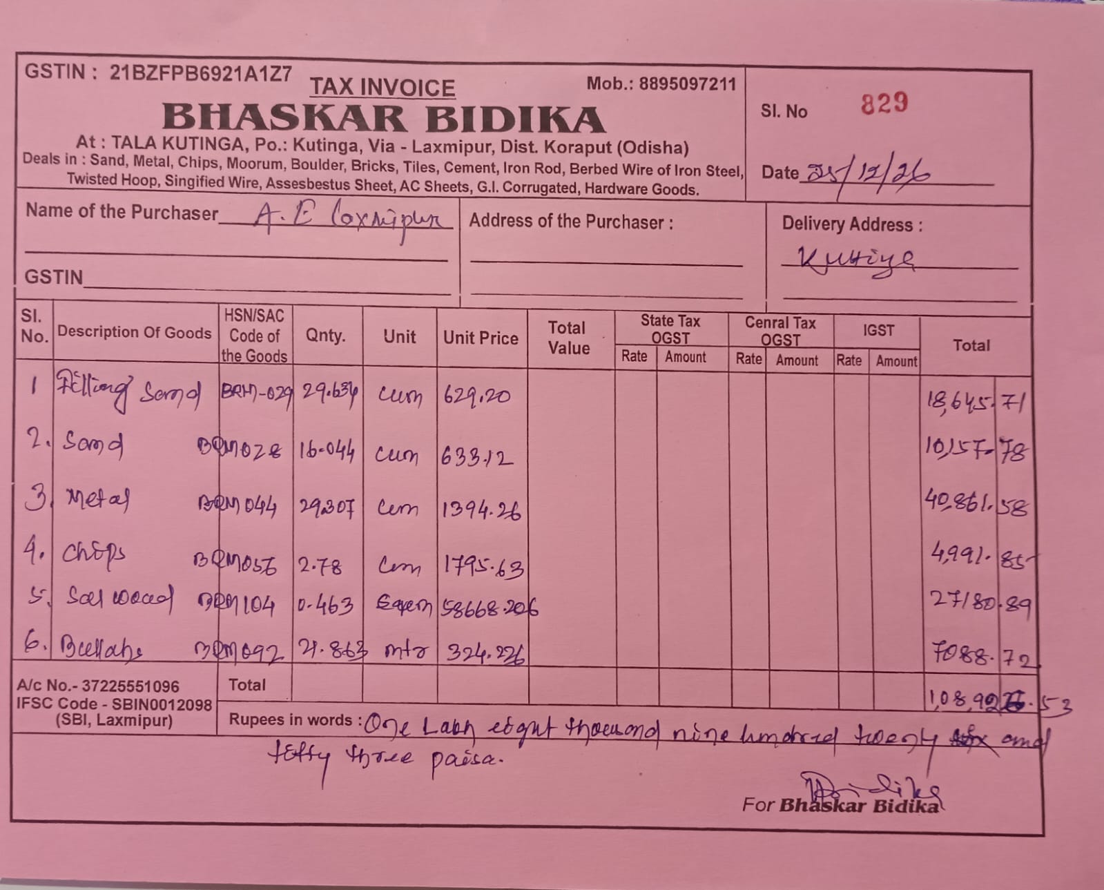 | Administrative Approval | SABYASACHI BEHERA (BDO) | 20-12-2025 | 20-12-2025 | Approved |