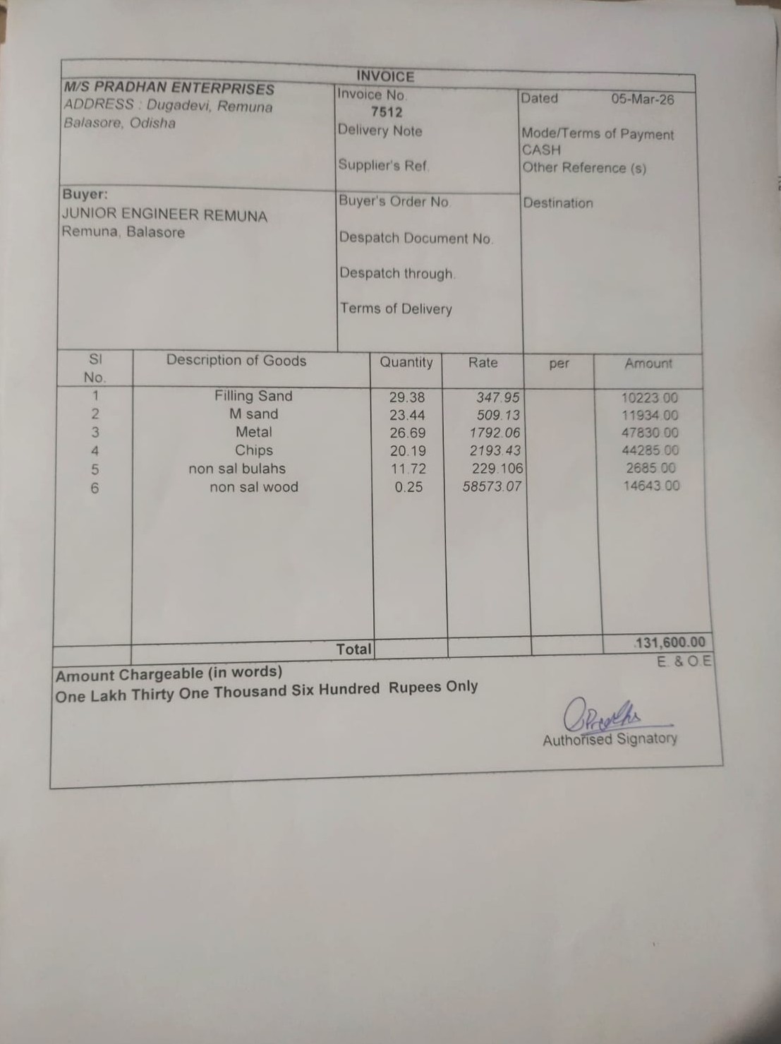 | Work Order Issued | Sourav Sarthak Mohapatra (BDO) | 24-02-2026 | 24-02-2026 | Generated |