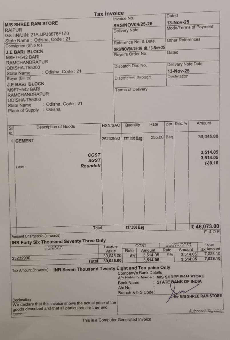 | Execution In Progress | Chirad Prasad Rout (AE / JE) | 07-11-2025 | 10-11-2025 | Approved |