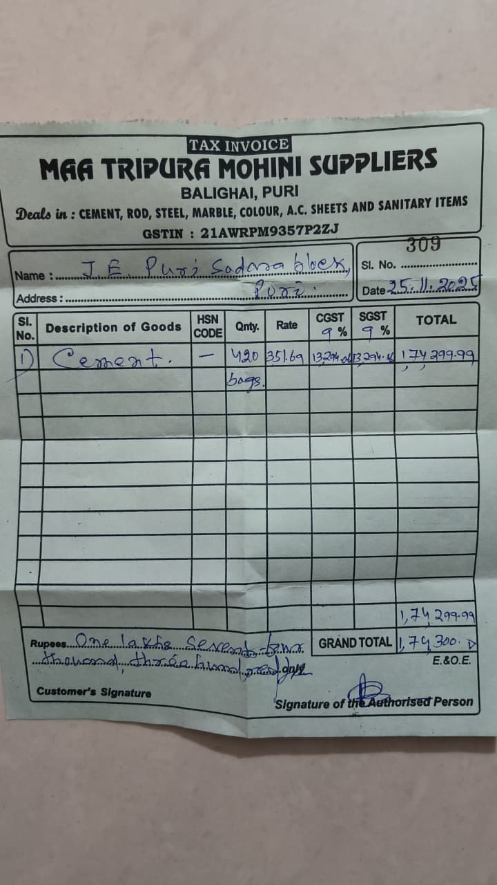 | Technical Sanction | Buddhadev Rath (AEE) | 30-01-2025 | 06-05-2025 | Approved |
