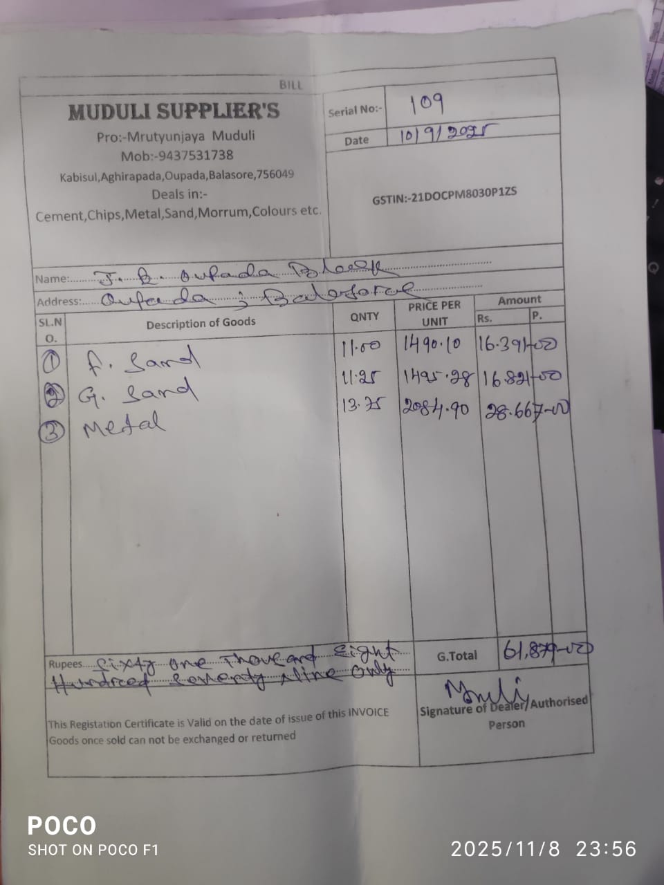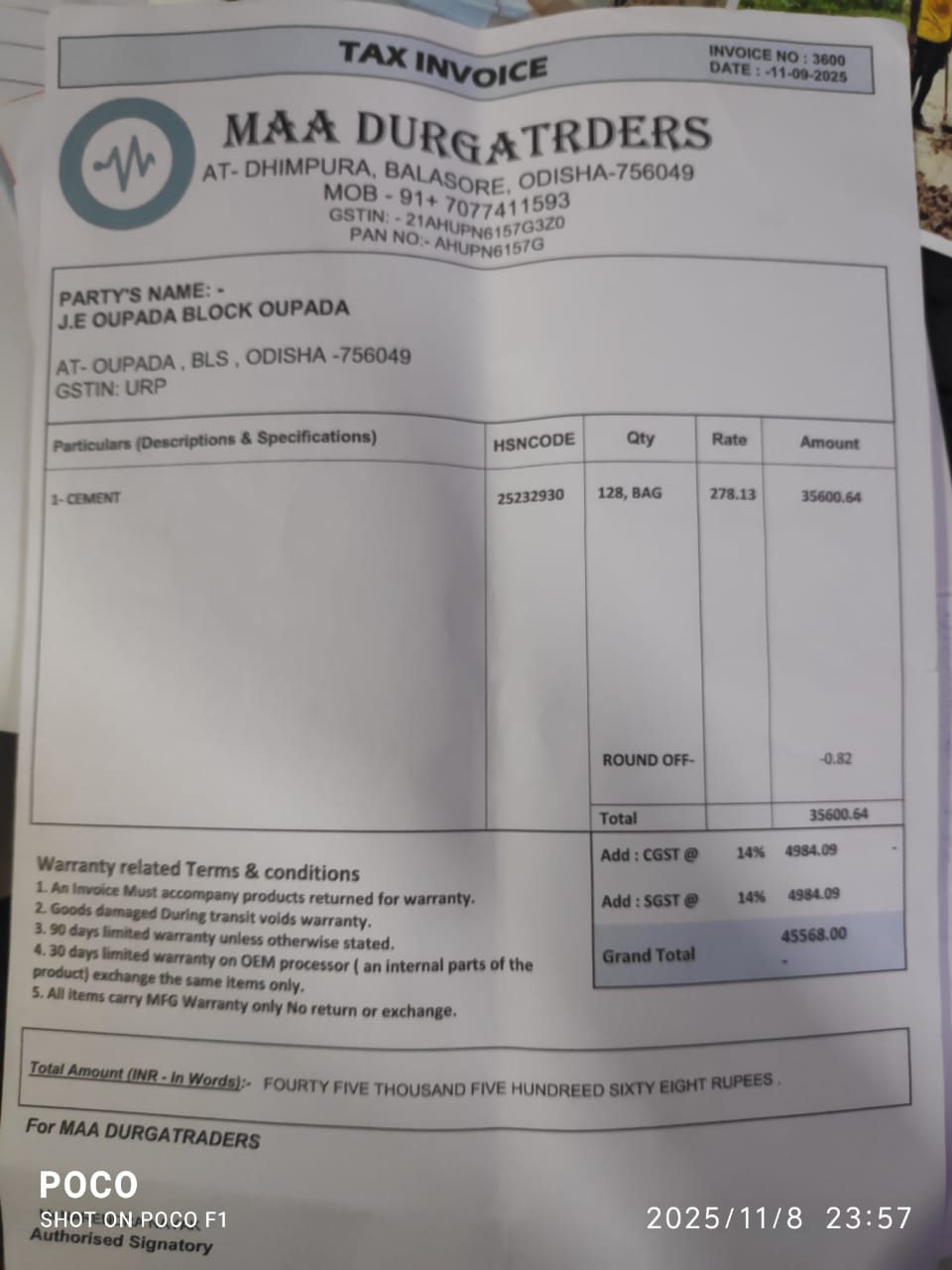 | Work Order Issued | Miss Saswati Sadual (BDO) | 08-11-2025 | 08-11-2025 | Generated |