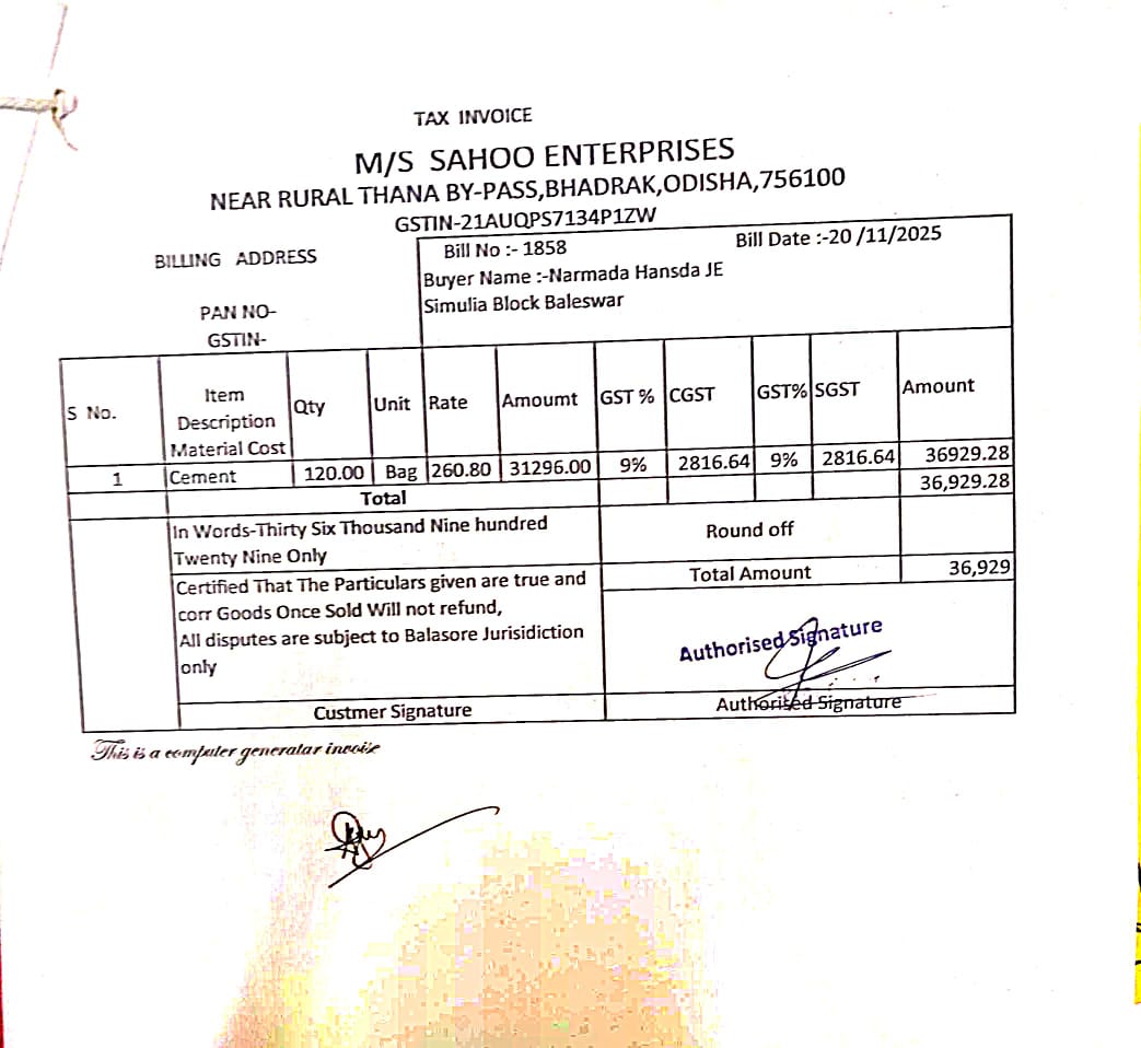 | Execution In Progress | NARMADA HANSDAH (AE / JE) | 29-11-2025 | 29-11-2025 | Approved |