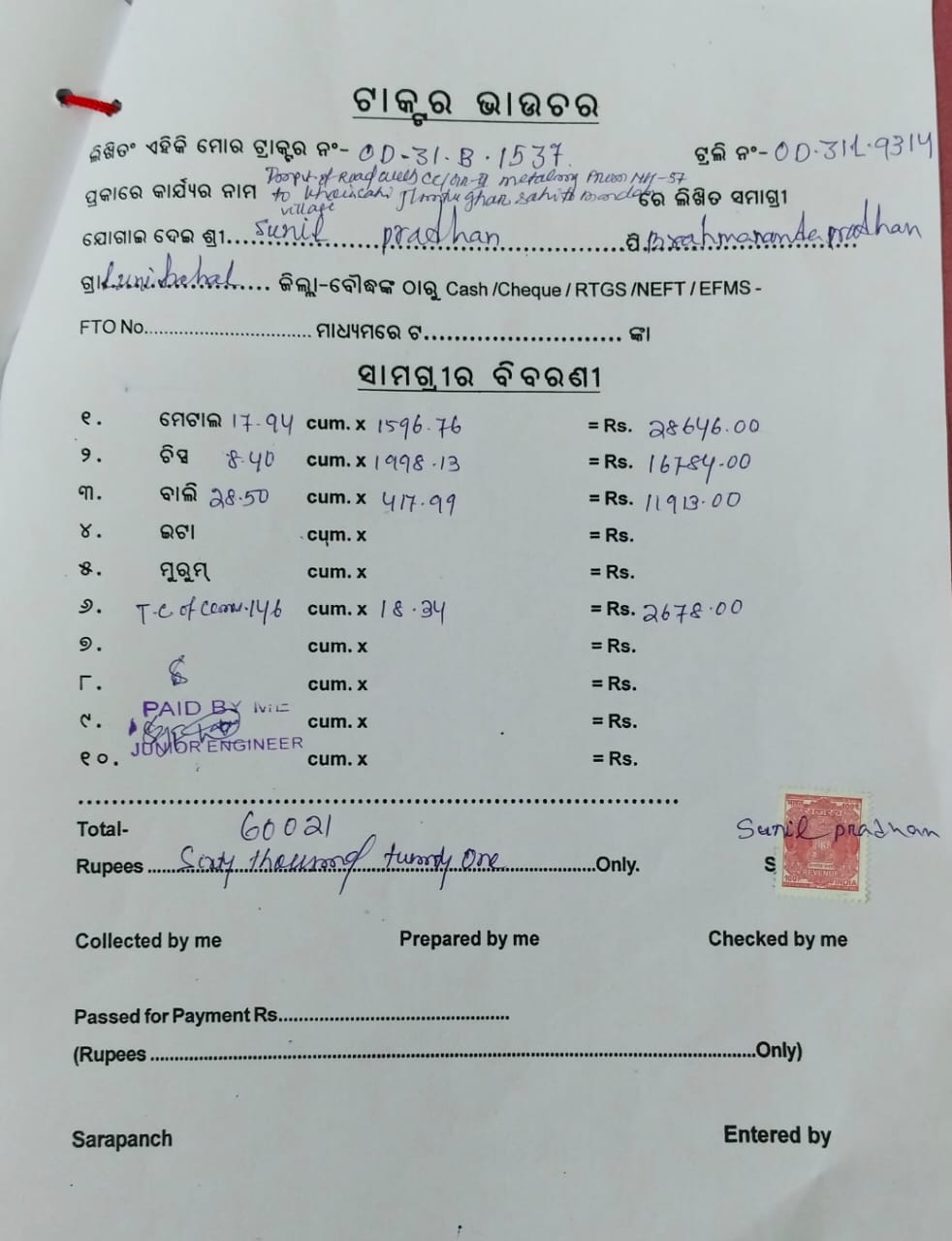 | Administrative Approval | Bijay Kumar Pradhan (BDO) | 25-06-2025 | 11-07-2025 | Approved |
