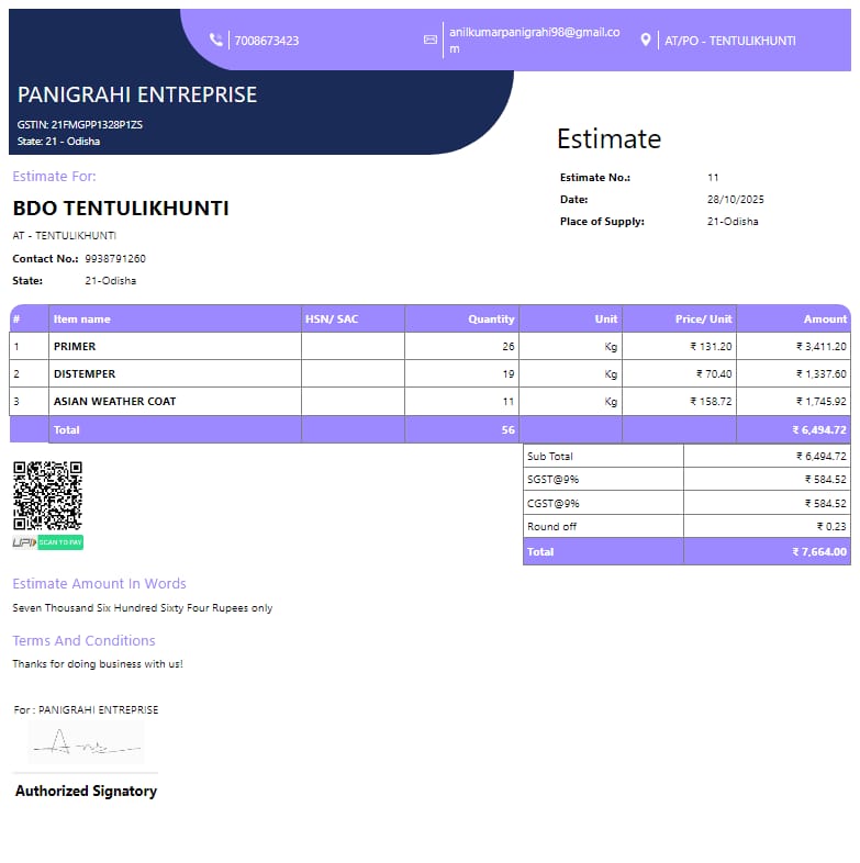 | Estimate Preparation | Manoj Kumar Panigrahi (BDO) | 04-11-2025 | 10-11-2025 | Approved |