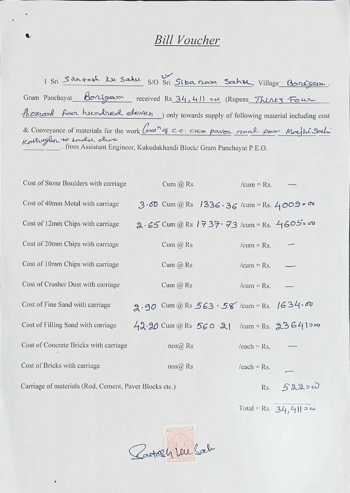 | Estimate Preparation | G SANKAR ACHARY (AE / JE) | 15-05-2025 | 16-08-2025 | Approved |