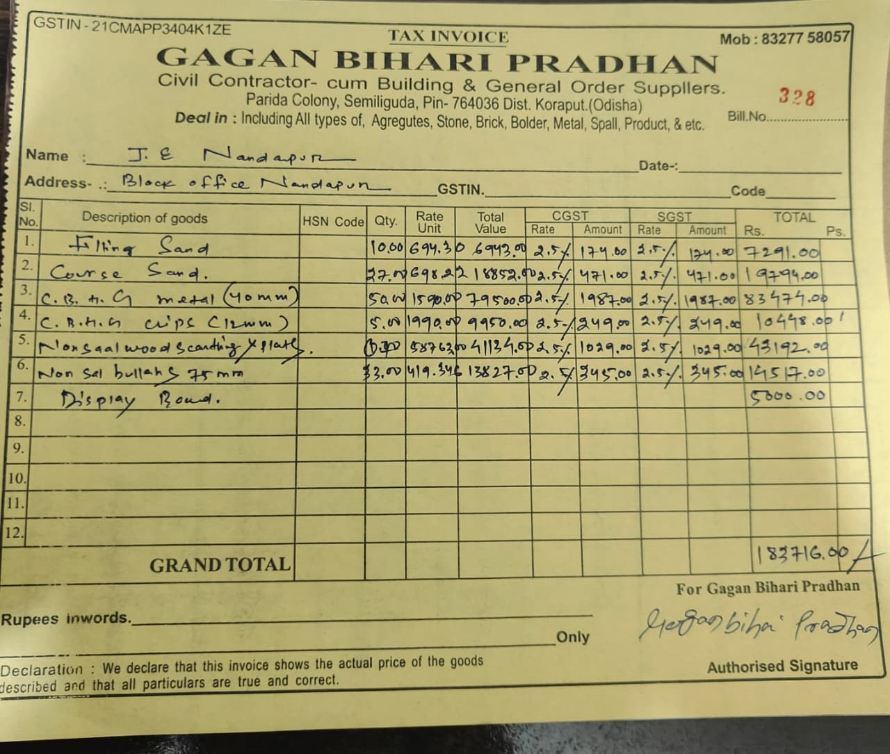 | Technical Sanction | JHASKETAN BEHERA (AEE) | 09-12-2025 | 10-12-2025 | Approved |