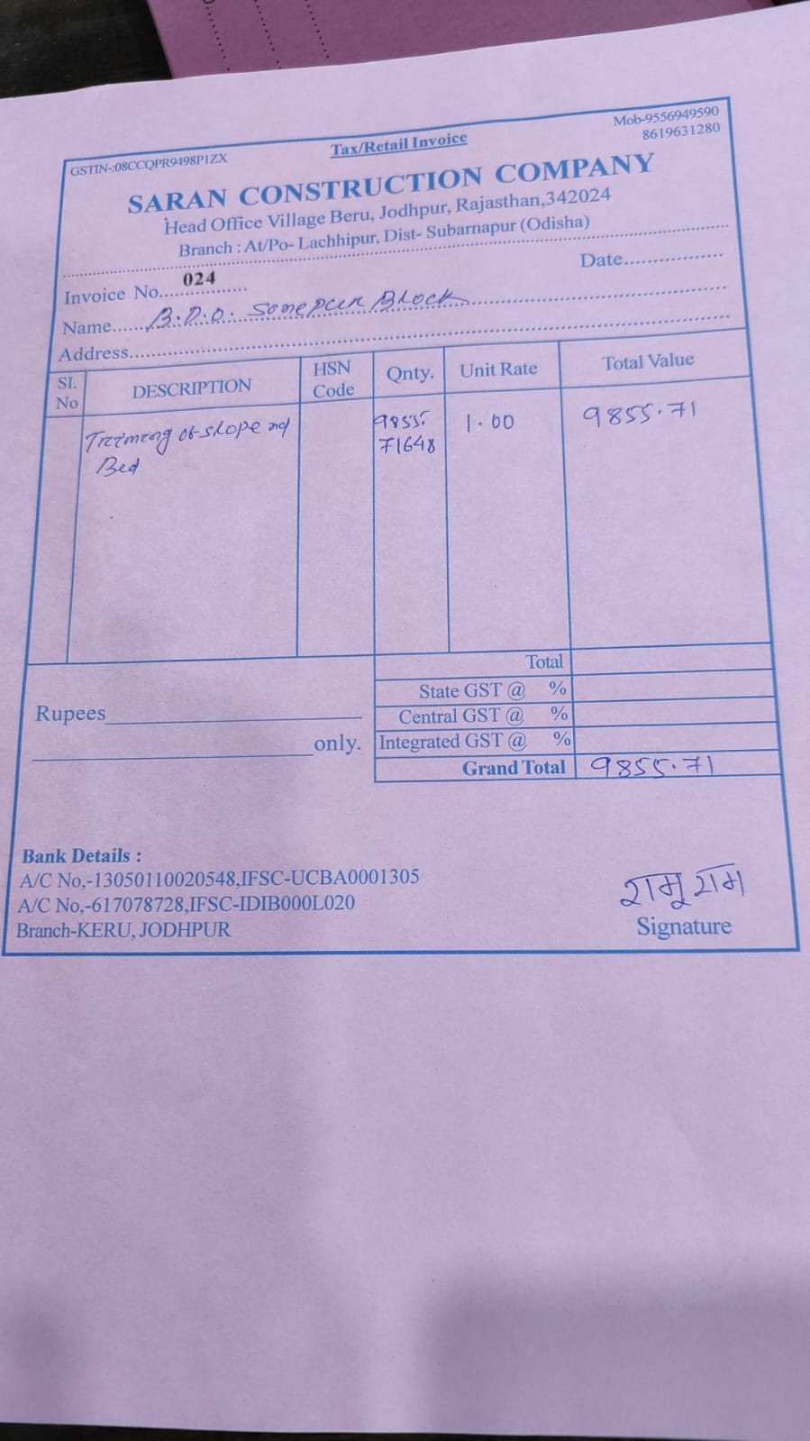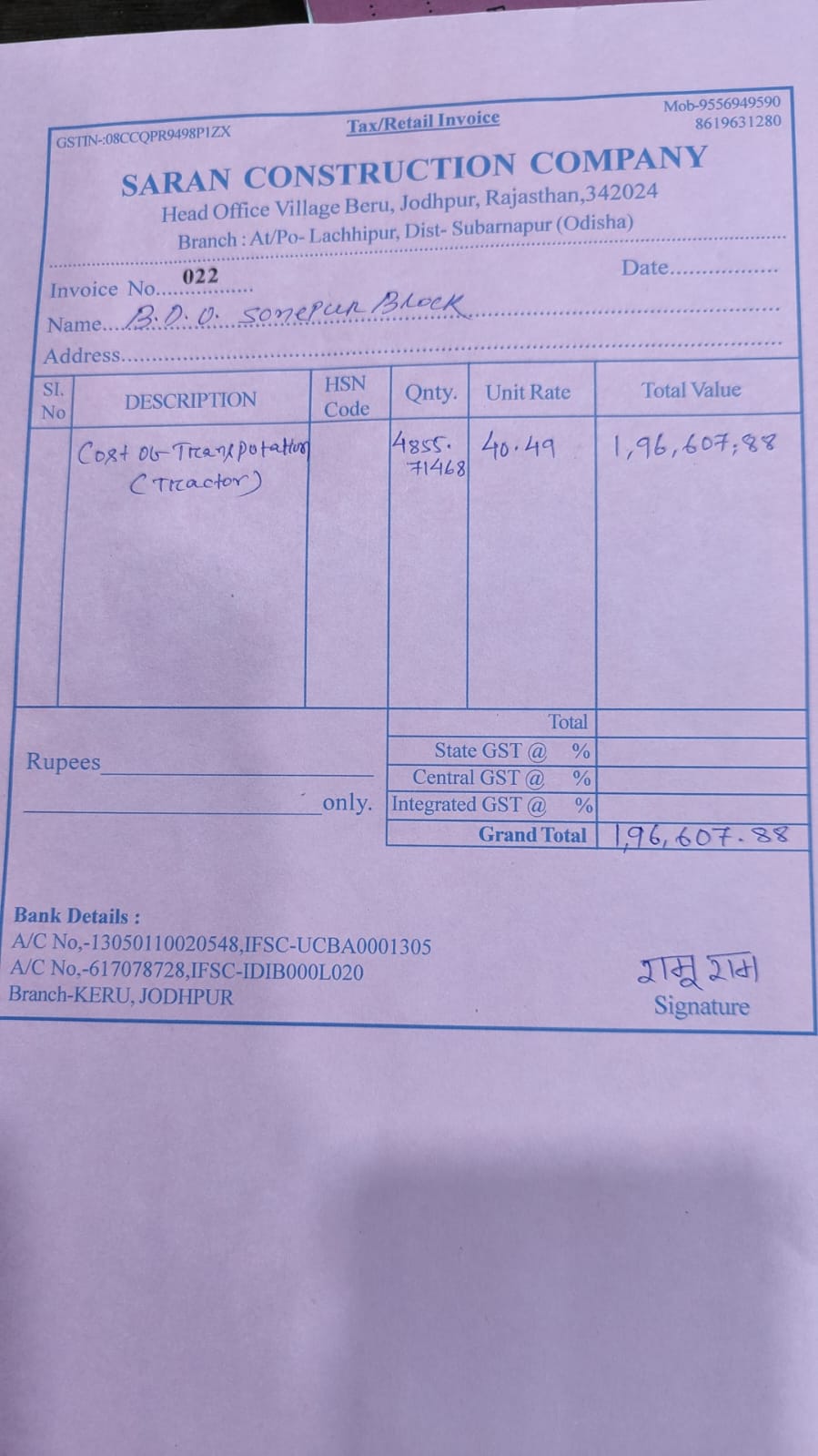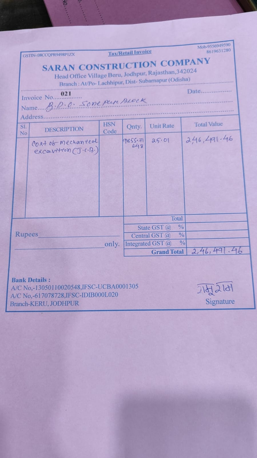 | Work Order Issued | MR SANJIB KUMAR SAHU (BDO) | 22-05-2025 | 22-05-2025 | Generated |
