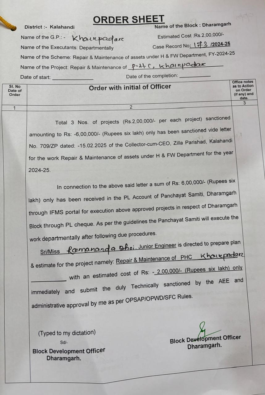 | Estimate Preparation | RAMANANDA BHOI (AE / JE) | 16-04-2025 | 30-05-2025 | Approved |