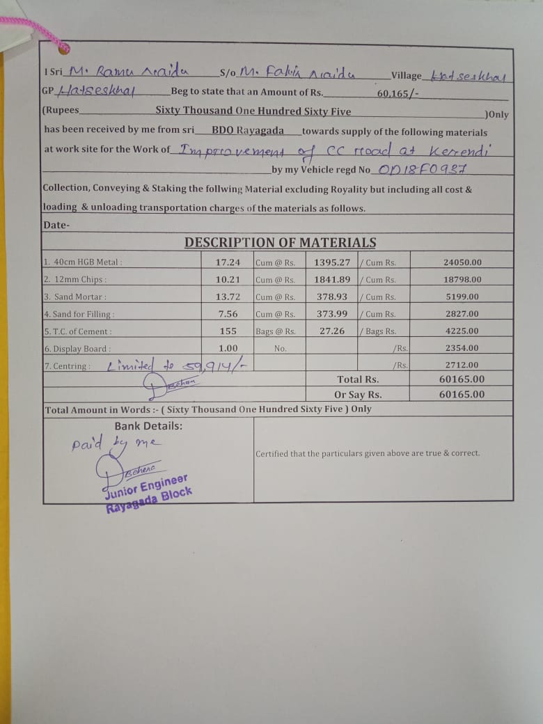 | Technical Sanction | RAKESH KUMAR SAHOO (AEE) | 20-03-2025 | 21-03-2025 | Approved |