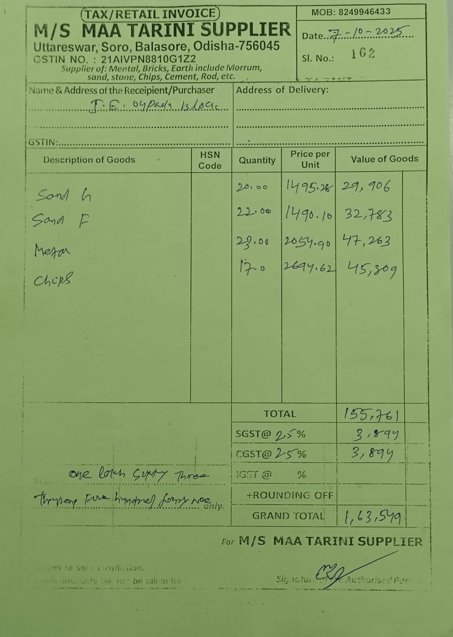 | Technical Sanction | Mamatarani Mohanta (AEE) | 06-11-2025 | 07-11-2025 | Approved |