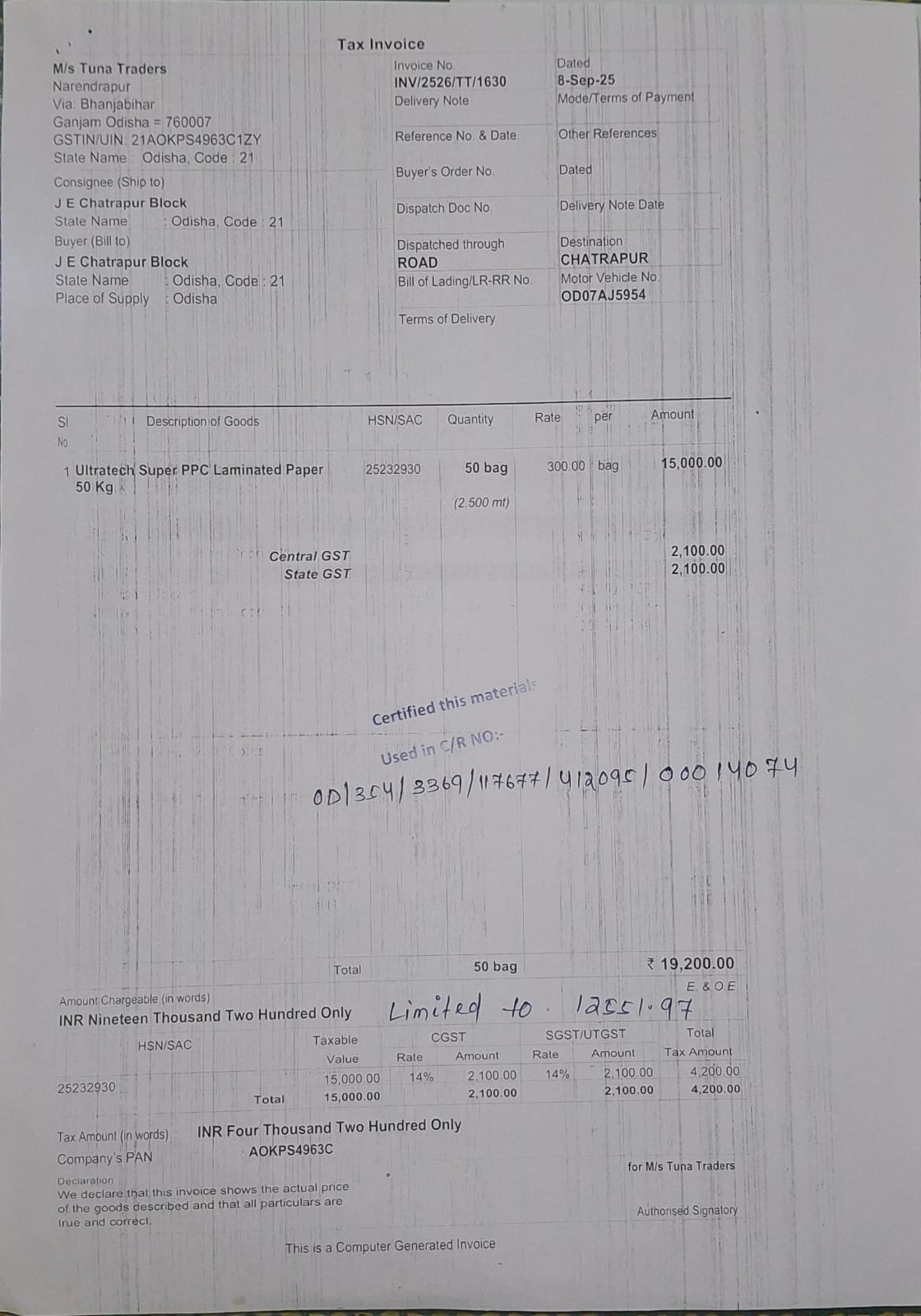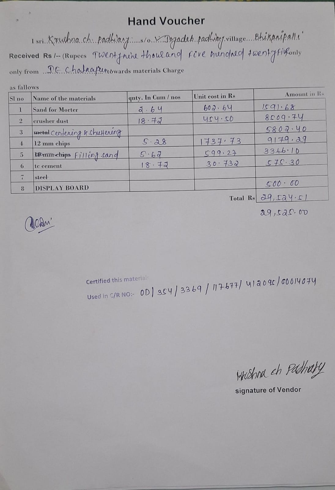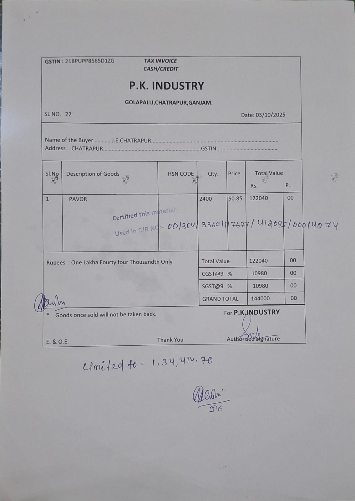 | Execution In Progress | JAYASENA BEHERA (AE / JE) | 10-09-2025 | 25-09-2025 | Approved |