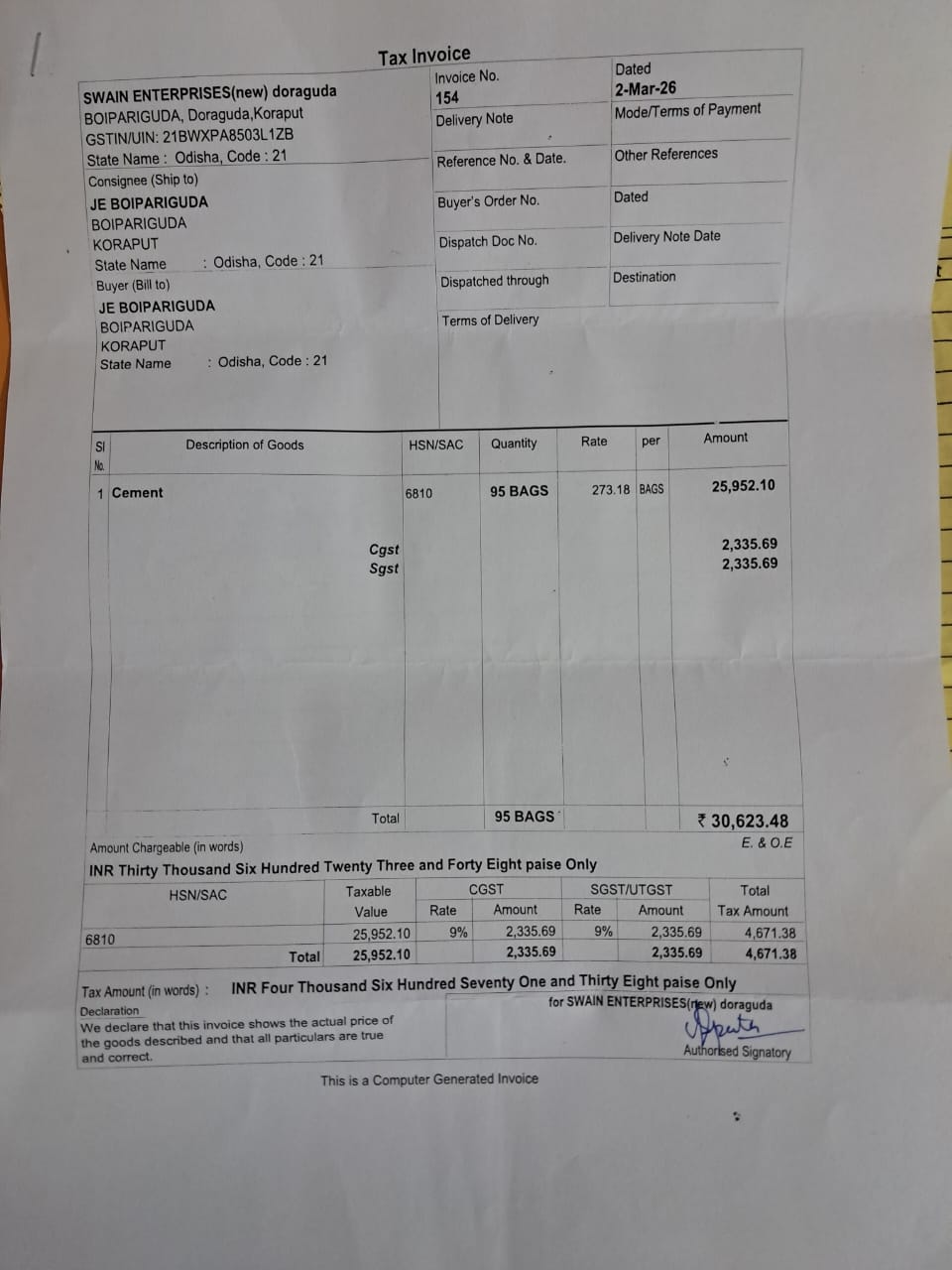 | Execution In Progress | Saroja kumar jena (AE / JE) | 17-02-2026 | 21-03-2026 | Approved |