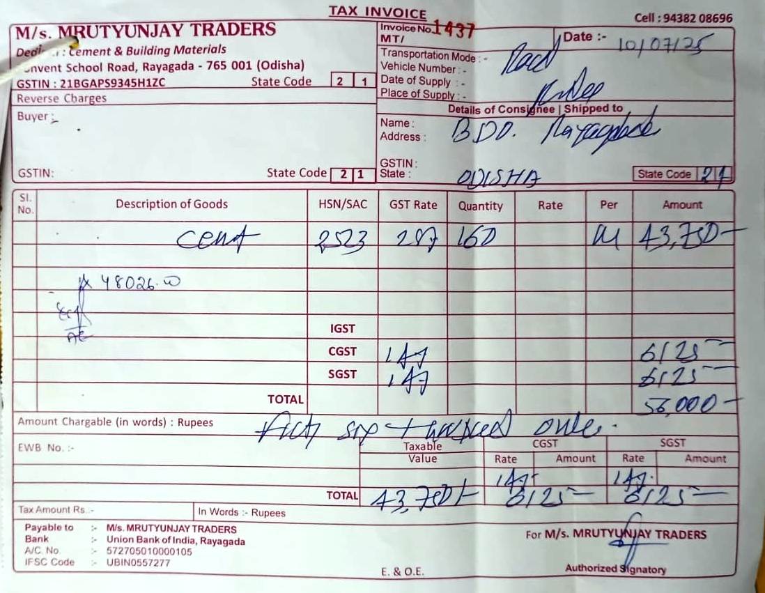 | Work Order Issued | SHRI SUJIT KUMAR MISHRA (BDO) | 14-05-2025 | 14-05-2025 | Generated |
