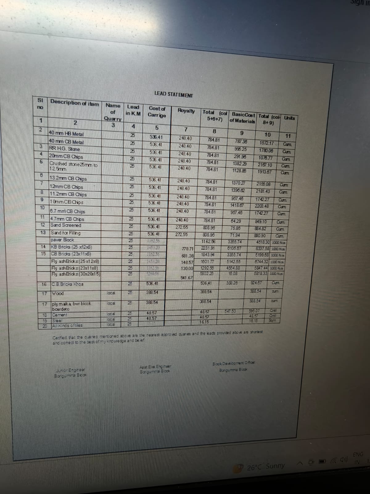 | Estimate Preparation | SUKANTA KUMAR PATNAIK (BDO) | 11-12-2025 | 21-12-2025 | Approved |