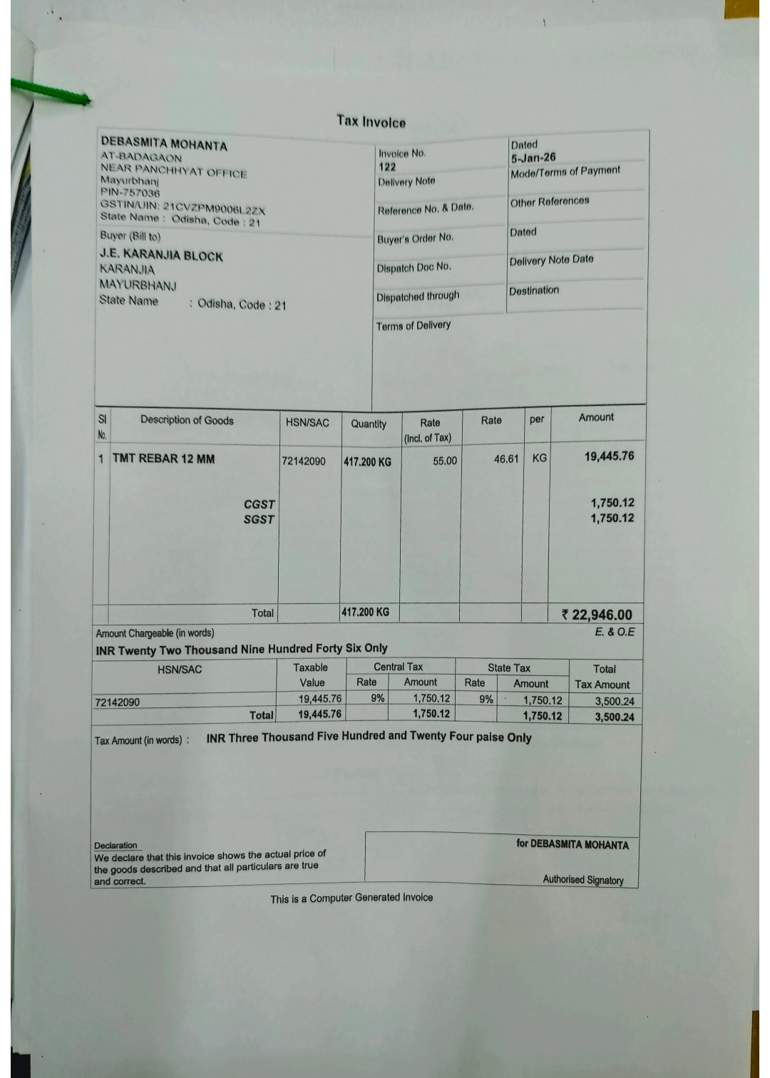 | Administrative Approval | PRADYUMNA KUMAR NAYAK (BDO) | 23-10-2025 | 23-10-2025 | Approved |
