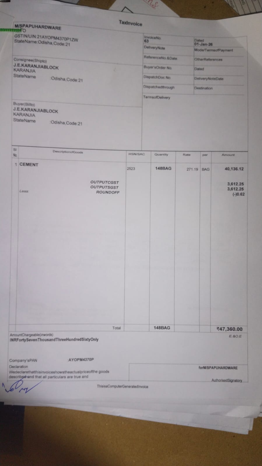 | Execution In Progress | Mitalin Dhal (AE / JE) | 23-10-2025 | 30-01-2026 | Approved |
