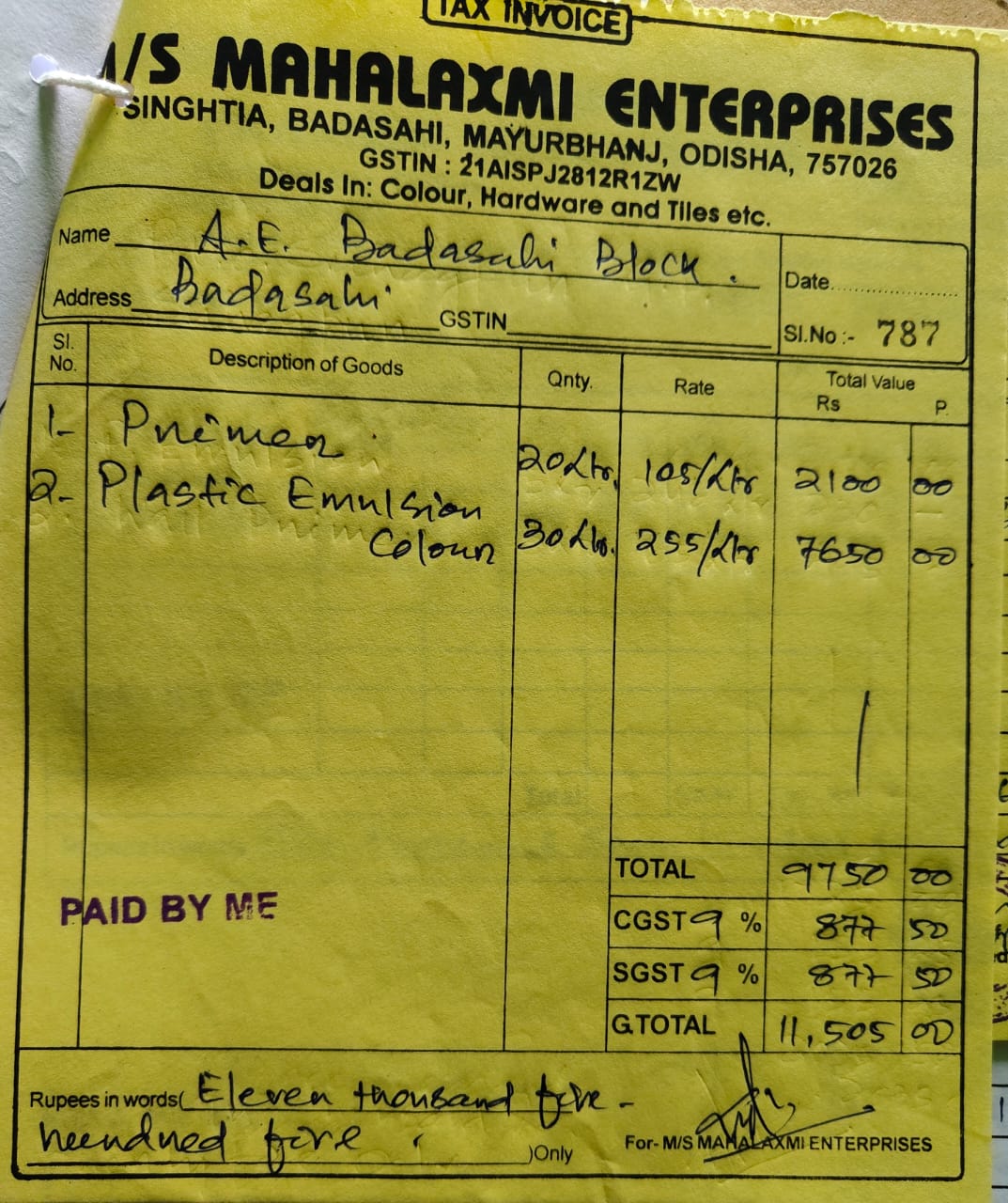 | 1st & Final Bill | ||||